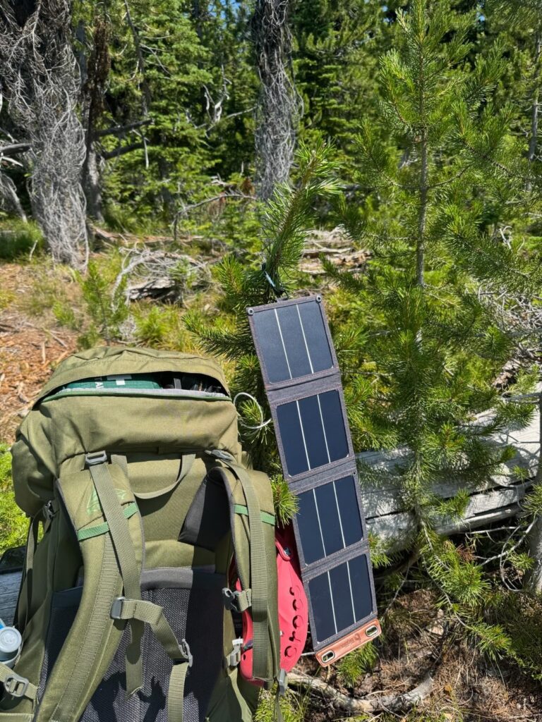 I highly recommend bringing something that has the ability to charge your devises using solar power. It is important to note that that these panels will only work to charge with sunlight, however I will also list one (that I also use) that is a solar charged battery pack that can be used in the evening. With this one I recommend clipping to the outside of your pack so that it immersed in sunlight all day. Lastly, I would bring some battery-operated lights. This could be a flashlight; however I strongly recommend using this battery powered light bulbs. You can hang them inside your tent and around your campsite.